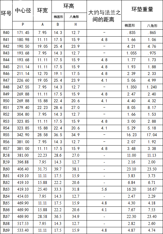R型墊片的制造符合API 6A、6B和ASME b16.20適合API ASME/ANSI B16.5法蘭。在橢圓形和八角形配置,這兩種類型是可互換的現代八角型槽法蘭。
